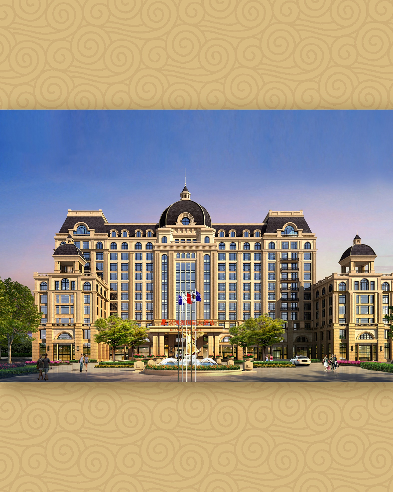 皇宮廳—金碧輝煌、皇宮式裝修,面積1038㎡,層高8.6米,配備愛情階梯、軌道威亞、二層觀禮臺、浪漫燈光秀、旋轉升降舞臺、頭頂天幕連接開合大屏??沙薪?0桌的大型宴會,也可舉辦600人的大型會議;還可用作會展、車展場地,每逢節假日還為市民上演文藝節目。